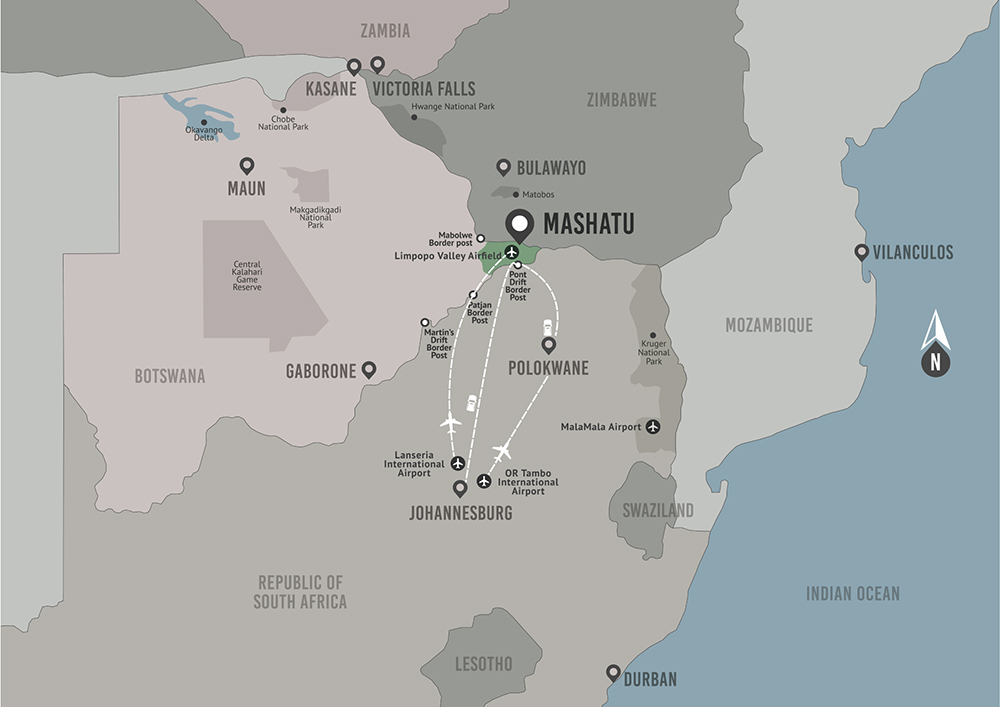 Road transfers available between Johannesburg and Mashatu through our partner, Limpopo Valley Access. Rates are available on the Limpopo Valley Access rate sheet.