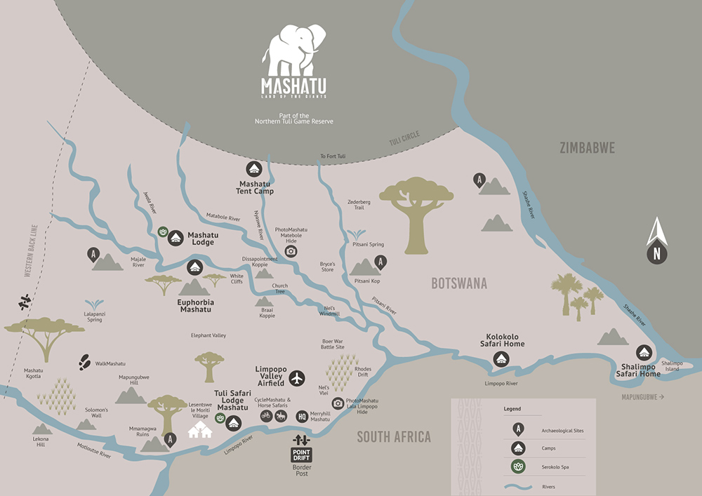 Located in the remote eastern corner of Botswana, where the Limpopo and Shashe rivers meet, Mashatu Game Reserve forms part of the Northern Tuli Game Reserve. With a private airport strategically situated within the reserve, travel is accessible and seamless.